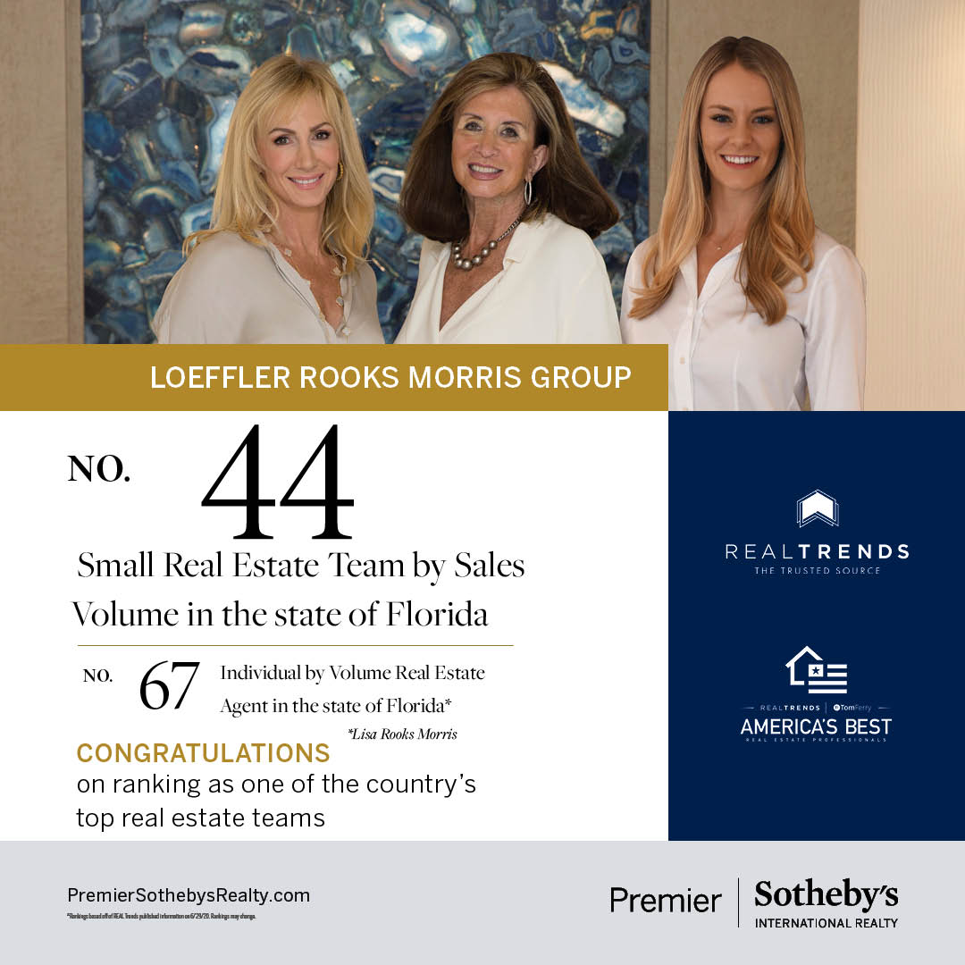 We are proud to share recognition by REALTRENDS as one of the top-ranking small real estate teams in the state of Florida! The LRM Group (formerly Loeffler Rooks Morris Group) has ranked 44th by sales