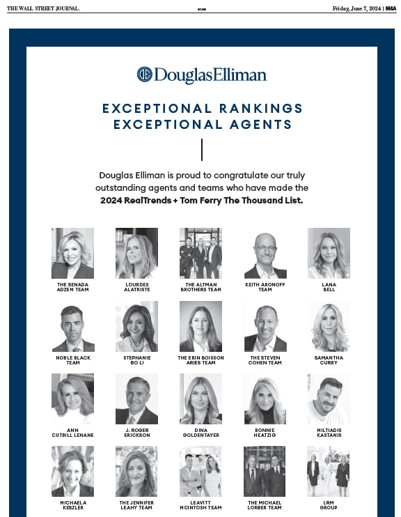 The LRM Group is honored to again rank within the highest producing real estate professionals in the United States. In the distinguished 2024 RealTrends report of outstanding agents nationwide, we ranked 56th of all small teams in the U.S. for sales volume. Thank you, Douglas Elliman, for elevating this award with a full page ad in the Wall Street Journal!