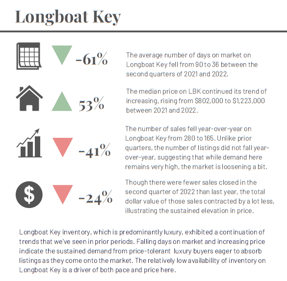 Trends throughout Sarasota for the second quarter point to a return to our historic seasonality - a feature of the Sarasota real estate market that was typical prior to the frenzy of pandemic sales activity. For the first quarter in the last two years, the number of listings rose relative to the prior year while the number of closed transactions fell. Together, these measures suggest that the supply-demand imbalance is lessening in intensity. Don't be fooled, though. This is still a seller's market because of several factors, including the enduring popularity of our market and affordability relative to cities with similar coastal and cosmopolitan appeal. The significant number of new construction projects adding luxury inventory to our market will strengthen the momentum of luxury home sales.